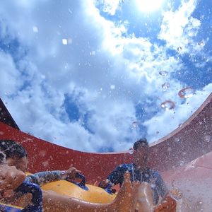 家族で行きました。大人二人に対して子供一人分がが無料になるキャンペーンがありお得に行けました。もう一社同じ割引のツアーがありましたが、直前では申し込めないようで、ベルトラさんは前日17:00まで申し込めて嬉しかったです。平日だからか空いていて少し並べば滑れるもの殆どで、サーフィンかボディボードが出来るようなものは待ち時間がある為、集合時間の関係で出来なかったことと、ひとつ動いていないスライダーがあった点は残念でした。お昼はピザやポテトを買って食べましたが美味しかったです。我が家の子供は小中学生でしたが、もっと小さいお子さんも楽しめる場所も沢山ありました。