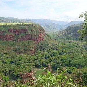 ところが最初の目的地であるワイメア渓谷に到着、階段を上ったところで赤と緑のコントラスの風景に感動、そして眺めれば眺めるほど素晴らしい渓谷に大感動でした。