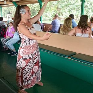 日本人のおば様ガイドが面白かったです。シダの洞窟で蚊にさされました(泣)そのまえに船に乗ったときにハワイアンダンスを体験しました。お昼はリゾートホテルでランチしました。コーヒーの木を見て、カウアイコーヒーを試飲しました。