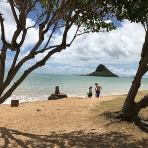 午前中だったため、ハレイワの街も空いていて写真スポットもシェイブアイスも並ばず楽しめて、ショッピングを楽しんでる間にソノミさんがワウワウレモネードをゲットしてくれて、カマロンとジョバンニのガーリックシュリンプを食べ比べさせてくれて地元の美味しいビールまで用意してくれるサービス!ホントありがたかったです。お腹を満たしてからカイルア方面へ、その時には天気も回復し、レンタサイクルを借りてラニカイに行くつもりが1軒目の自転車屋は10歳以上しか乗れない自転車で下の子が乗れず、2軒目で3人乗り電動アシスト付き自転車を借りることに成功。坂道も楽々スイスイでした。その時の対応もソノミさんのおかげでスムーズに。念願のラニカイピルボックスとラニカイビーチで存分に遊び3時のおやつのように、ソノミさんがブーキモのパンケーキをテイクアウトしてくれてたのでそちらをいただき少しお買い物してからホテルへと送っていただきました。