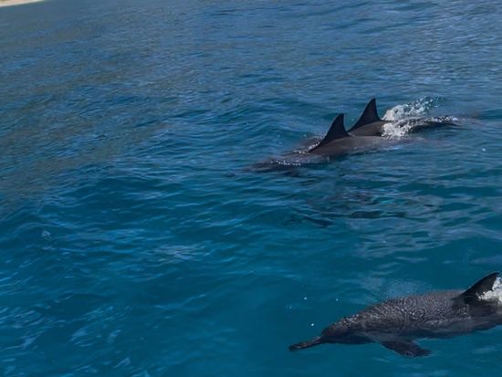今回はタイミング的にイルカと一緒に泳ぐことはできませんでしたが、最初に数頭のイルカに出会い、最後には数十頭のイルカと、なんとクジラまで見ることができて大感動!