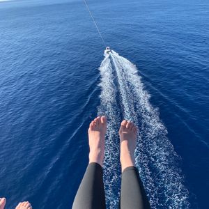みんなでワイワイしながら船に乗って移動して、20分くらい経ったら順番にパラセーリングしました。キャプテンの方が全部やってくれたので、安心できました!飛ぶ前は怖かったけど飛んだらもうそれはそれは楽しかったですし景色も素晴らしく海は綺麗で最高でした!