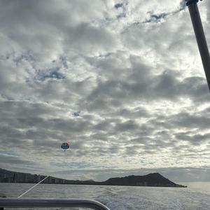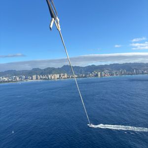 ダイヤモンドヘッド、ビーチ、ヒルトンビレッジを一望できる空中散歩ができました!パラセーリングで上がってる時は怖くないですが、船がスピード出す都合上、船に乗ってる時は浮遊感があり怖い時があります。40ドル払えば写真を100枚程度撮ってくれます。