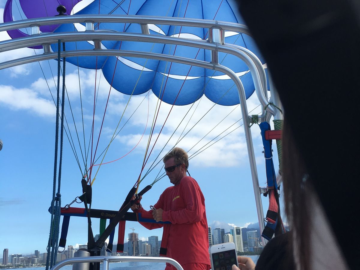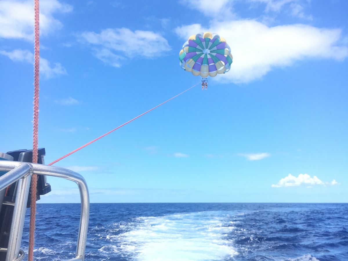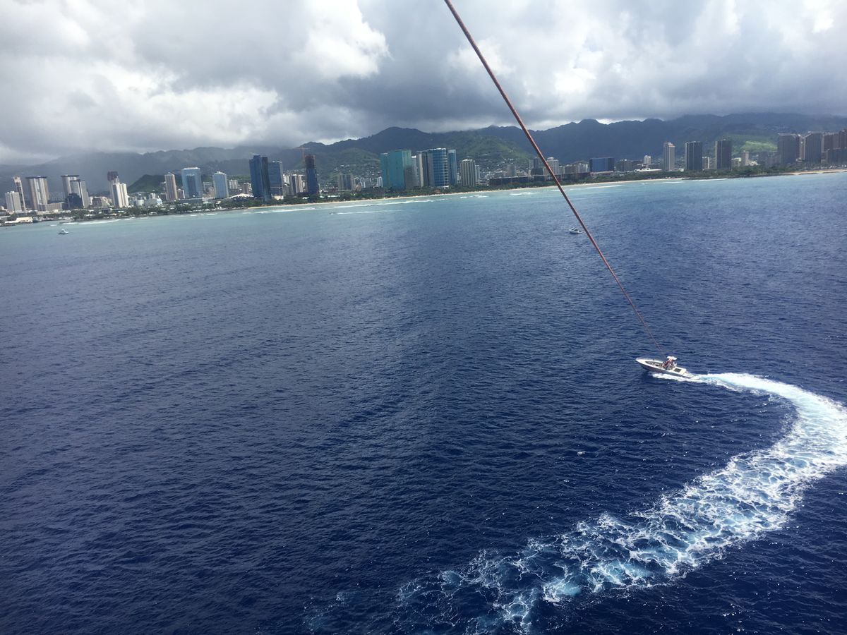 初めてのハワイ、初めてのパラセーリングでしたが、最高に気持ちよかったです。