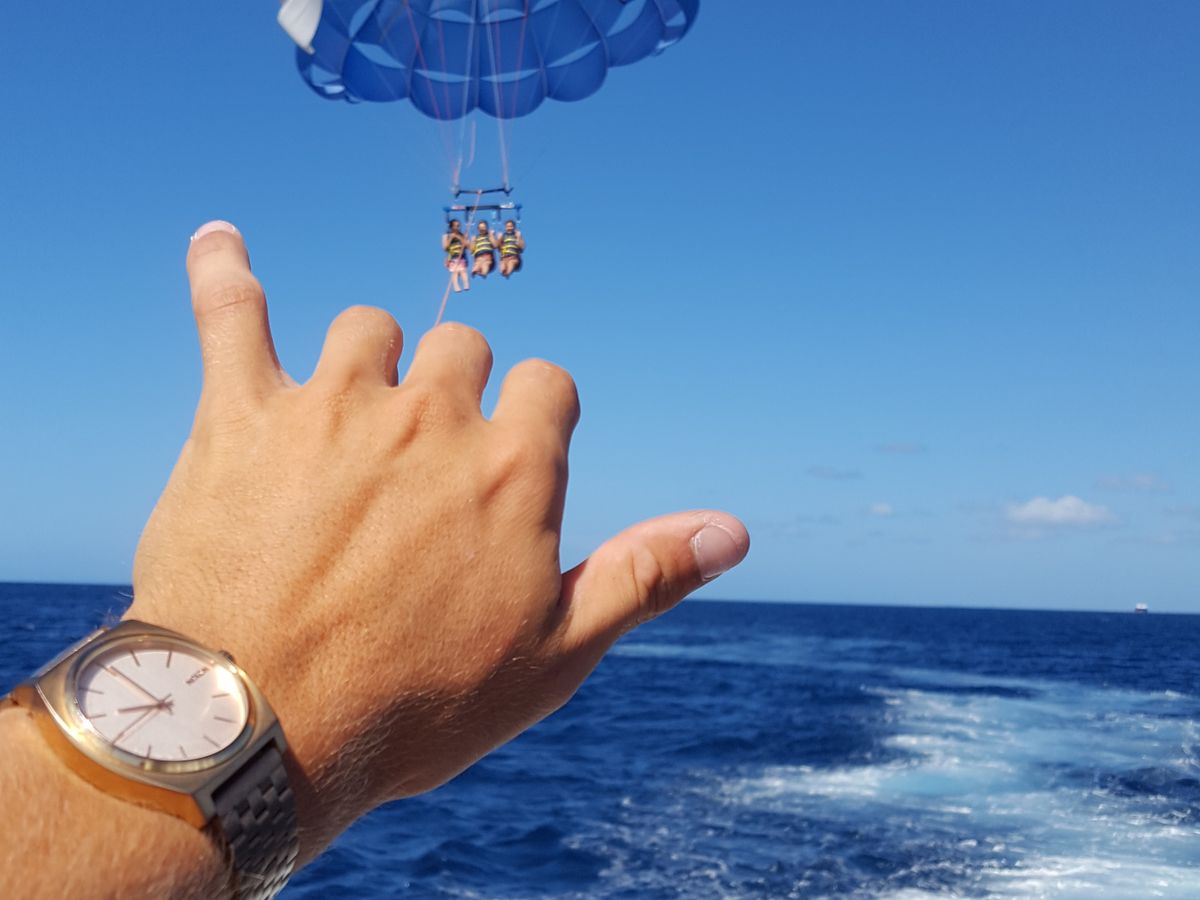 50歳にして初めてのパラセイルを体験することに。90mの高さに耐えられるか不安でいっぱいでしたが、送迎ドライバーのマシンガントークと、船のスタッフの陽気で親切な雰囲気で