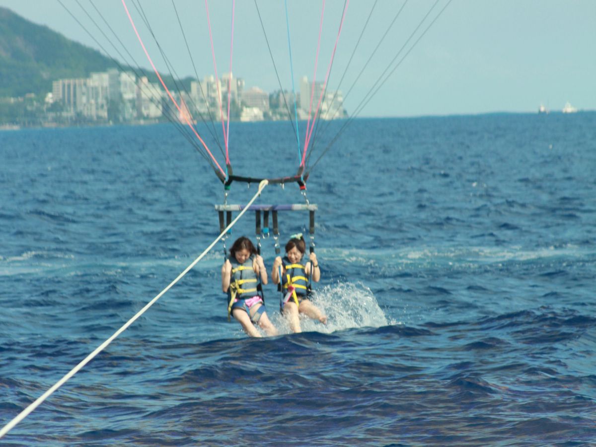 一番長い間空中にいるものを予約しましたが、短い時間を予約した方とほとんど変わりませんでした。船を操縦している人が予約カードのようなものを持っていましたが、確認もしていなくてアバウトな感じでした。パラセイリング自体はとても楽しかったです。今度はハワイに到着してから他のツアー会社で頼もうかな、と感じました。