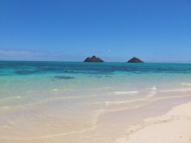 15分ほどシュノーケルを楽しみ、写真を3人で撮り合い、大騒ぎしてとても楽しかった~!!!!2時間のツアーガイドもあっという間で、再びカヤックでカイルアへ向かい、Shopへ戻ってガイドさんとはお別れ・・・。その後はピザ屋さんでのランチとフリータイム。ランチ後はもちろん再びカイルアビーチに戻りましたが♪キレ