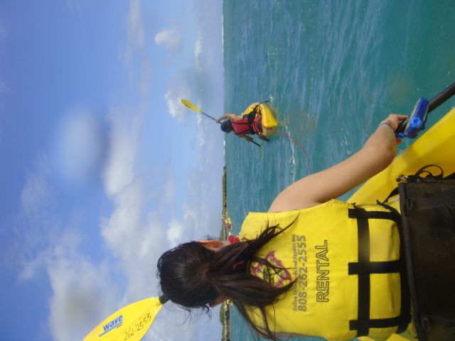 I had friends visiting the islands, and they wanted to do something a bit different, and 'off the beaten path' so I decided to take them Ocean Kayaking over in Kailua! We headed out, a bit late, and got there and the staff at Kailua Sailboards and Kayaks were amazing and friendly, telling us all the best insider tips for kayaking out there! We got out into the ocean, and it was extremely windy and choppy, but it was so much fun heading out to Flat Island and then over to the beach for a bit of relaxing snorkeling and sunbathing. Thanks again to the great staff at Kailua Sailboards for all their help with everything kayak and ocean related, my friends and I had a blast braving the elements and spending the day out on the water!