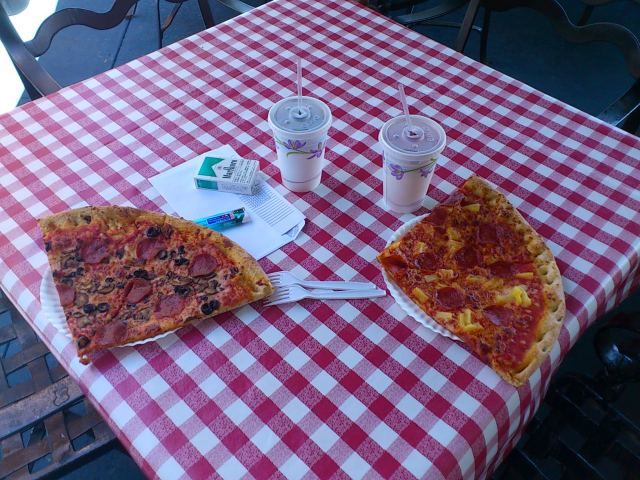 ランチで私達はピザを選びましたが、このピザのおいしさがとんでもなくおいしく、びっくり。スライスが大きいので食べれるか心配でしたが、あまりのおいしさに家族みんなぺろりでした。