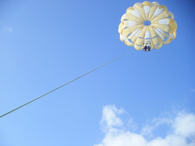 パラセーリングは初めてではなかったので、緊張もなくリラックスして乗りましたが、いざ上にあがると想像した以上に高くて、気持ちいいはずが怖かったです。