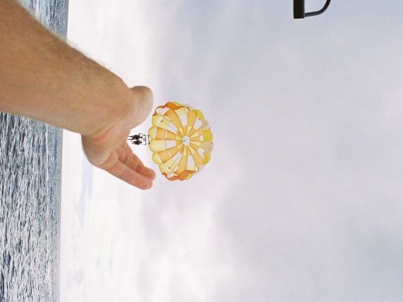 We had always wanted to try parasailing. It was fantastic. We were so high in the air that the people on the boat looked like ants. It was a great way to see the island from the air. We were laughing and having a blast. The transition on and off the boat was very smooth. They took pictures for us and only charged $15 and gave us the roll of film to develop. The shark cage tour wanted $60 for the video so we bought the pictures from this tour.