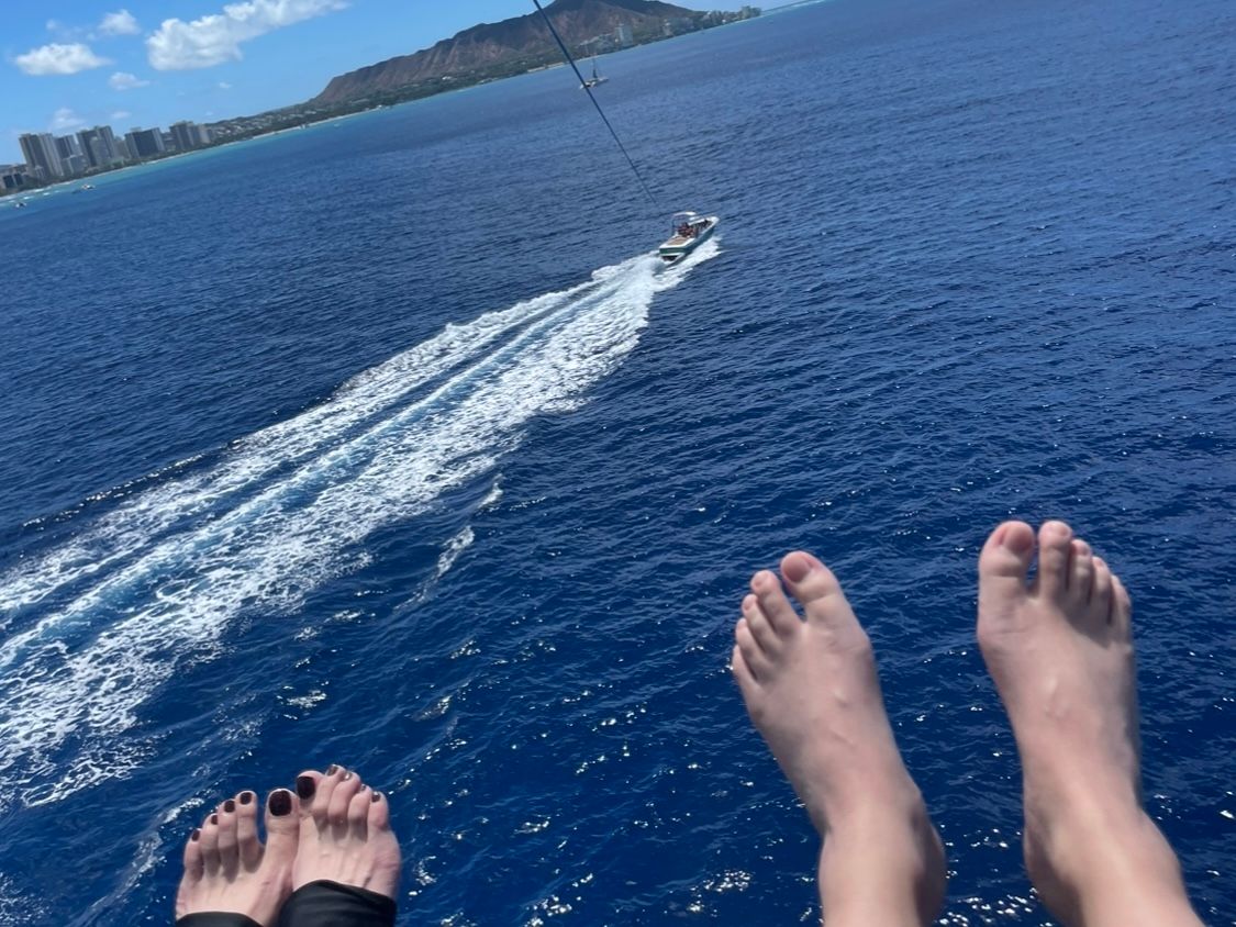 楽しい遊覧の後はお約束のジャポンもあり、一緒にボートに乗った人たちとも最後は和気あいあいと写真を撮ったり話したり。飛ぶ以外にも楽しいことがたくさんありました。ボートからワイキキ、ダイヤモンドヘッドを見たりできるのもよかったです。