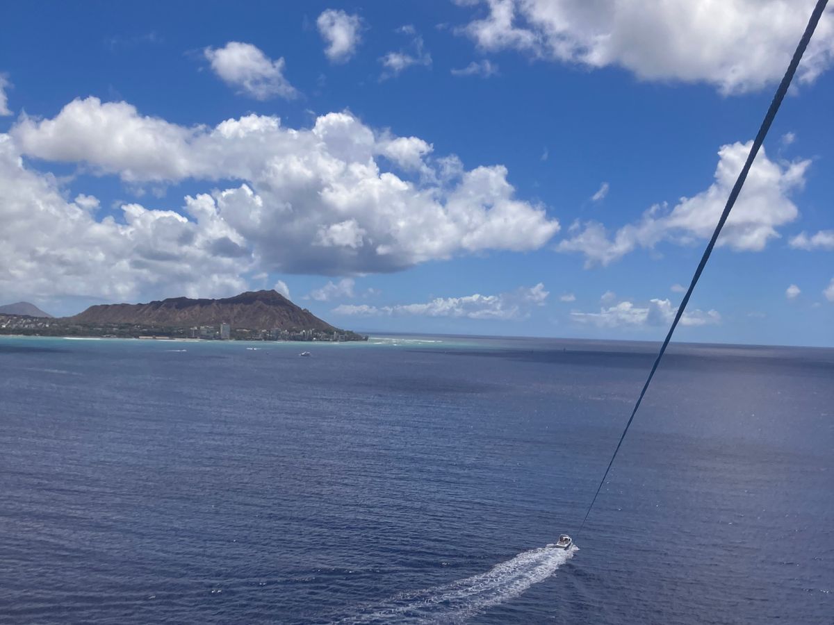 私はジェットコースターが苦手なので少し怖いなと思っていたのですが、ジェットコースターみたいにフワッと体が浮くような事もなく、空中からワイキキを見渡せ、とても気持ちいいし楽しかったです!!
