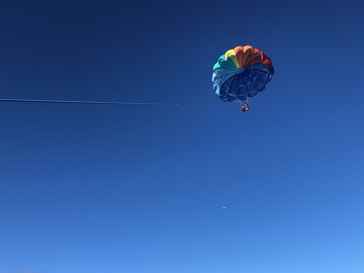 パラセーリング初めてでしたが、初めはスリル感がハンパじゃないですが、高さに慣れてくれば最高でした。