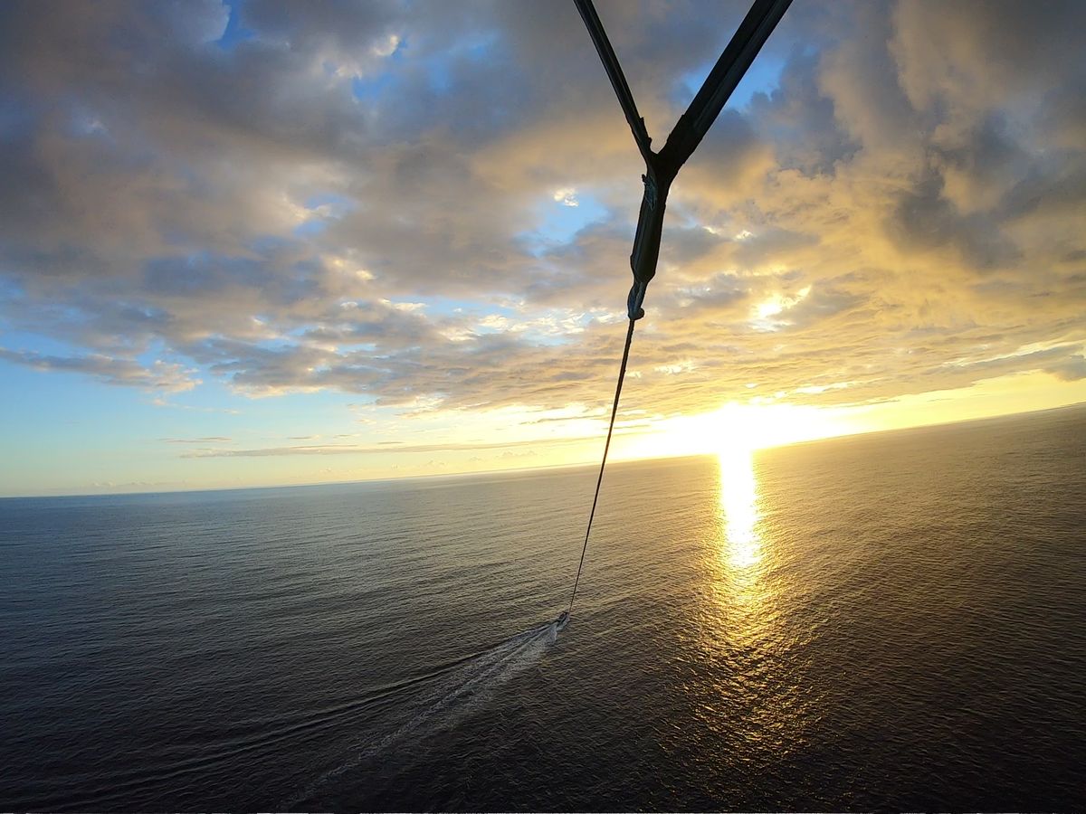 ハワイの風をあびなから空に浮かんでいる瞬間は最高でした!降下した際、水に濡れたいか濡れたくないか確認してもらえるので濡れたくない方も安心して参加できると思います。
