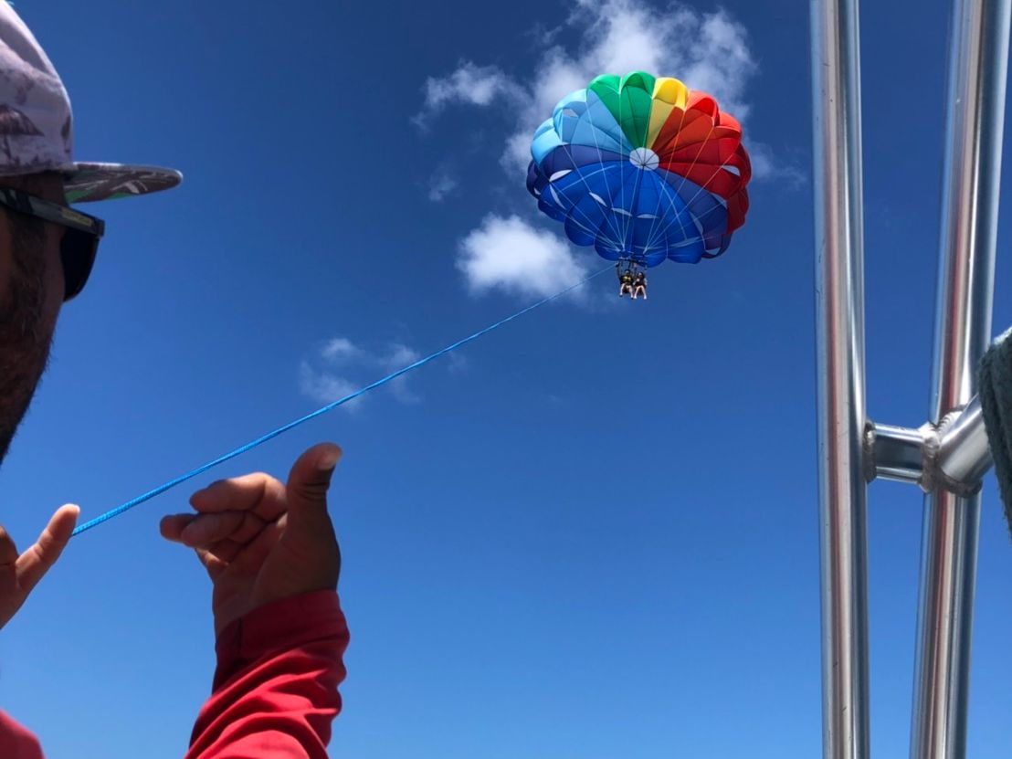 I was TERRIFIED to go parasailing. The team that took us out was funny, lighthearted and made me feel completely at ease. What an incredible experience and a lifetime memory as part of our round-the-world honeymoon! Thank you for everything!! Highly recommend this to anyone who has even an inkling of a desire to go! ♡