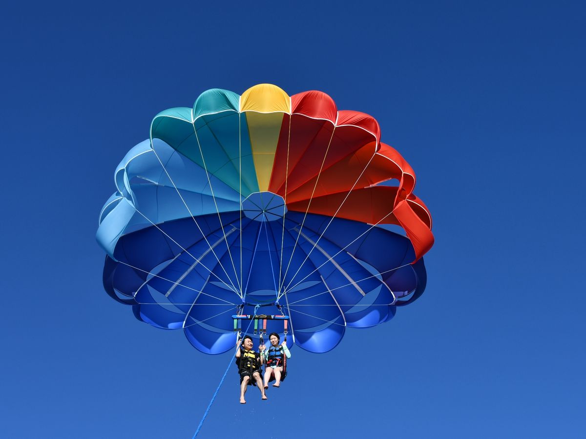 船場での待ち時間が約1時間。日陰も少ないので、注意が必要です。初めてパラセーリング、少し高所恐怖症がある私ですが、せっかくだからと思い150mと1番高いのにしました。実際体験したら、全く恐怖感も無く、最高でした!
