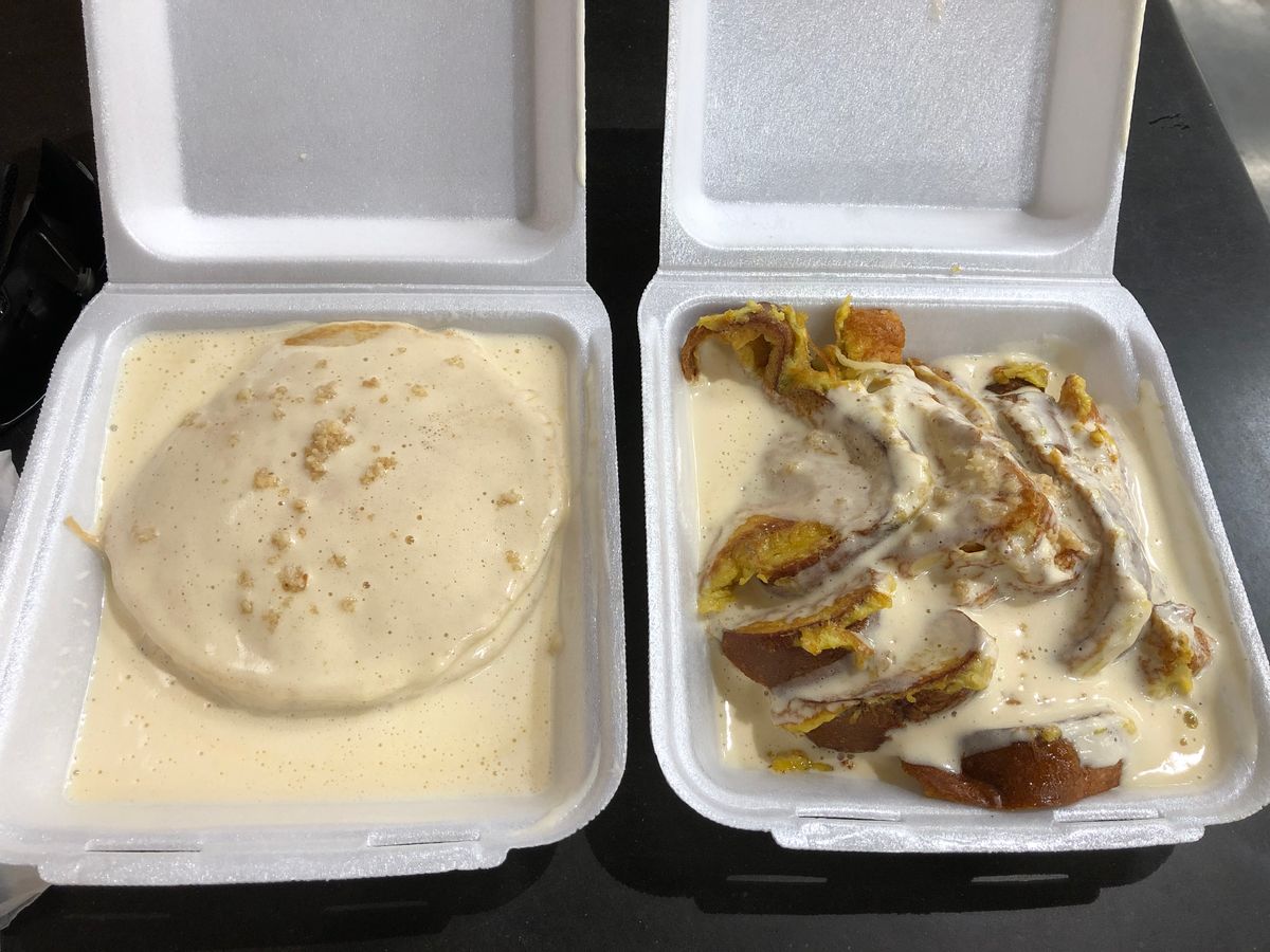 当日はホテルの近くでピックアップしてもらって、カイルアのお店へ。私たちは午前中が自由時間で、午後にカヤックでした。自由時間のすごし方はビデオで教えてくれました。自転車を借りてラニカイビーチも魅力的だったのですが、ブーキモのパンケーキに軍配が上がり、私達はカイルアタウンへ。ブーキモでマカデミアナッツソースがかかったパンケーキとフレンチトーストをテイクアウトし、近くのホールフーズへ。アイスコーヒーとスムージーを購入し、半年ぶりに実食!幸せの瞬間、間違いなく旨いです!