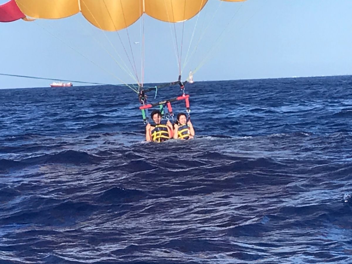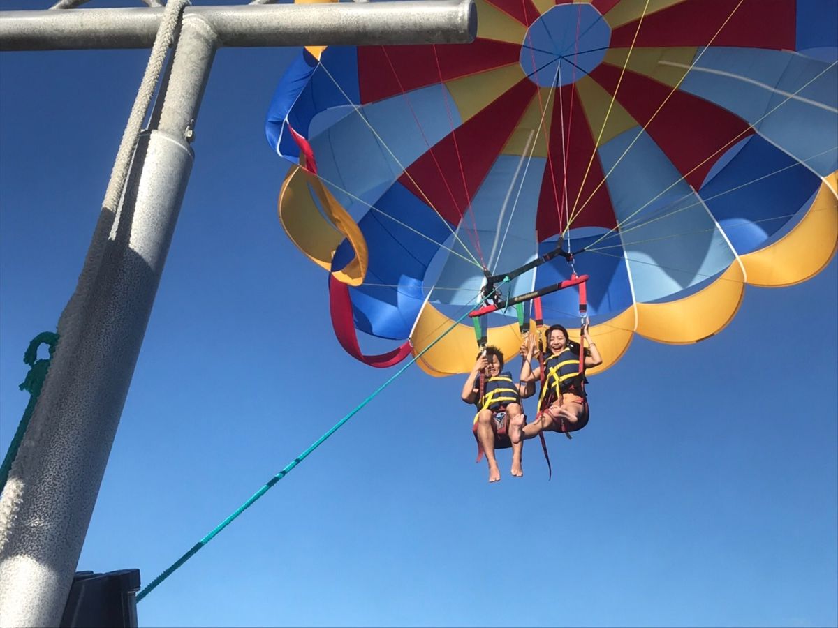 スカイダイビングと迷ったのですが、パラセーリングの方がお手頃だった為今回はパラセーリングにしました。