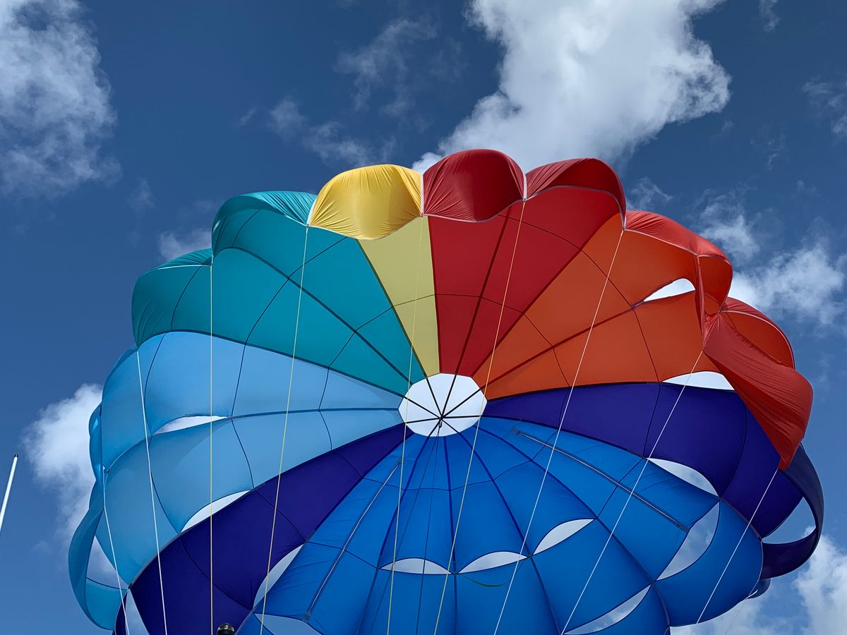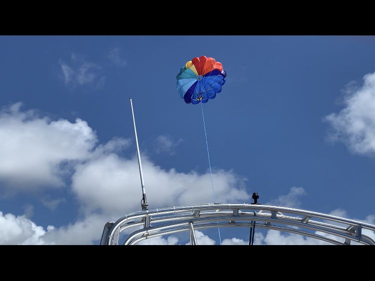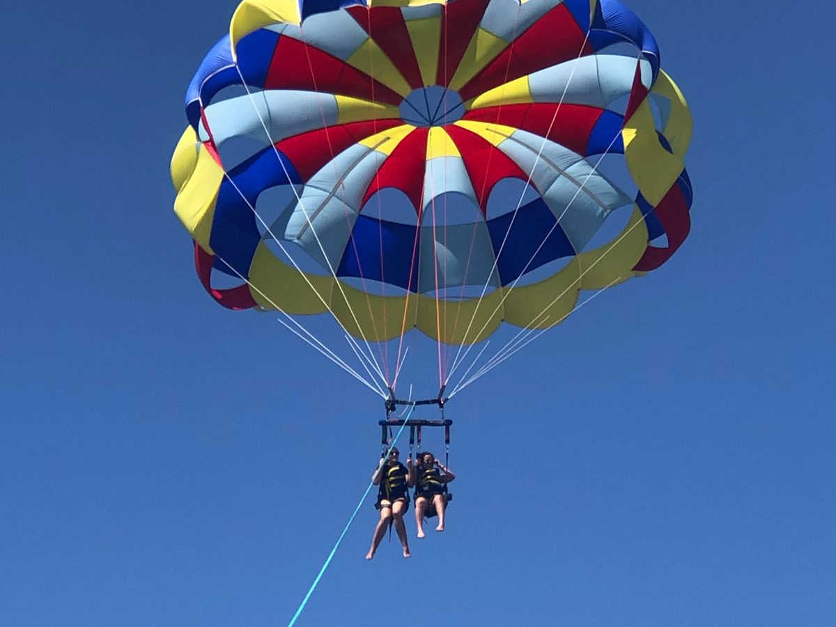 女性2人で参加しました。私たちの他に3組の家族や夫婦が同じ船に。船に乗り込むとライフジャケットを着用して出発!最初はあまり揺れませんが沖へ行くにつれ波が高くなるためかなり揺れました。ある程度沖まで行くといよいよ1組ずつスタート。パラシュートを装着してもらうと、あっという間に船から離れていき空へ!最初はスリルがありますが、高くなるにつれ海・空・山・街の景色が一望でき、風もとても気持ちよく最高の気分でした!!150メートルにして良かったです。自分たちの番が回ってくるまでドキドキしましたが、インストラクターの方が音楽をかけてくれたり、話しかけてくれたので少しリラックスできました。また参加したいです!