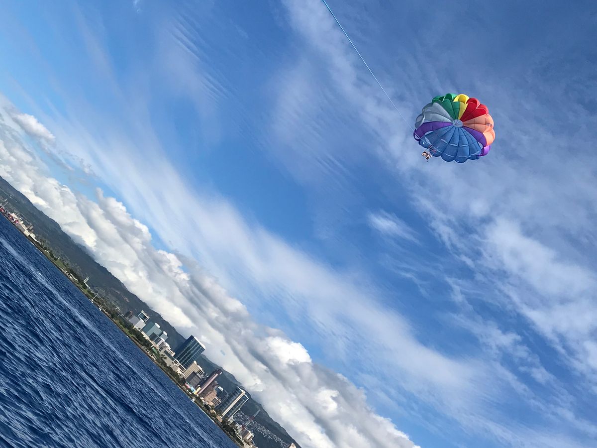 主人と150mのパラセイリングを申し込みました。高くて怖さもありましたが、それ以上に素晴らしい景色とアトラクション感でとても楽しむことができました。