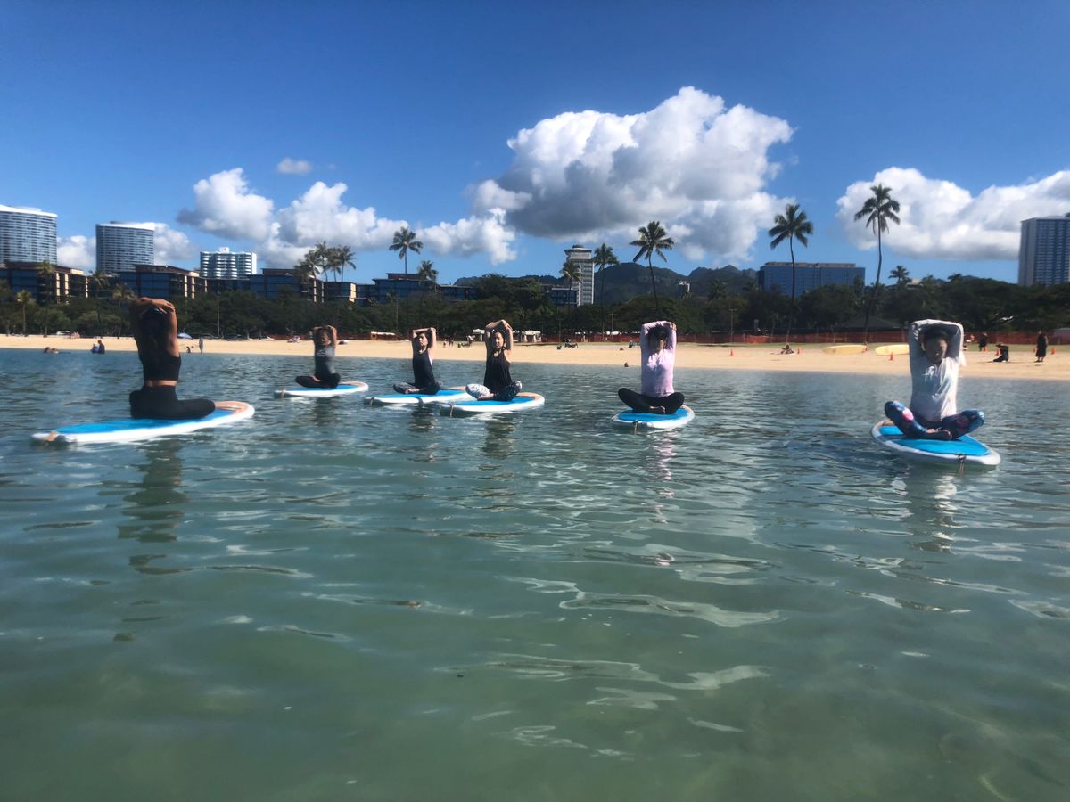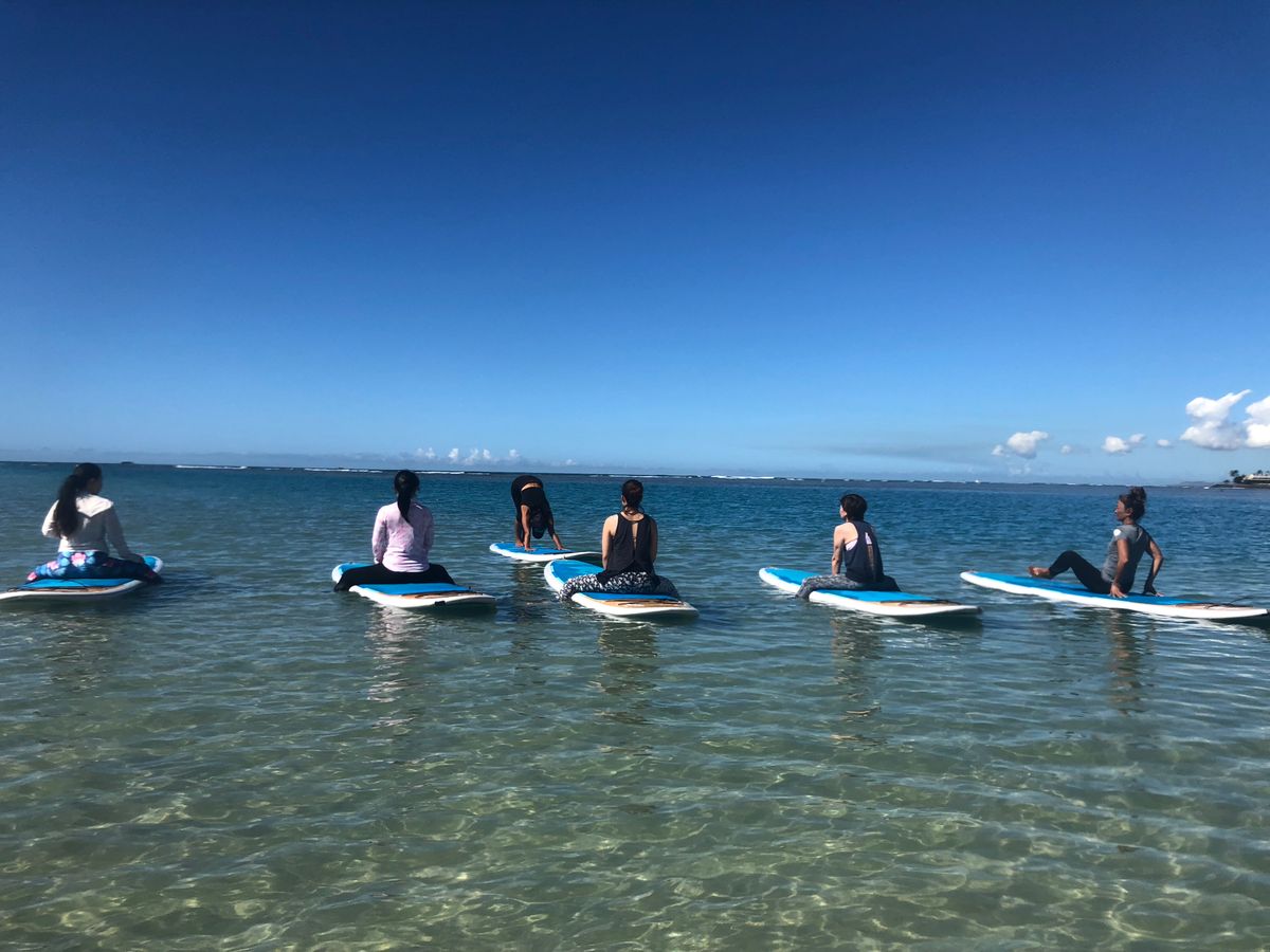 そうなんです、海に落ちることを恐れずポーズをしていただき、落水してもハワイの海は気持ちが良いのと、何かが吹っ切れまたレッスンを楽しんでもらえます。
