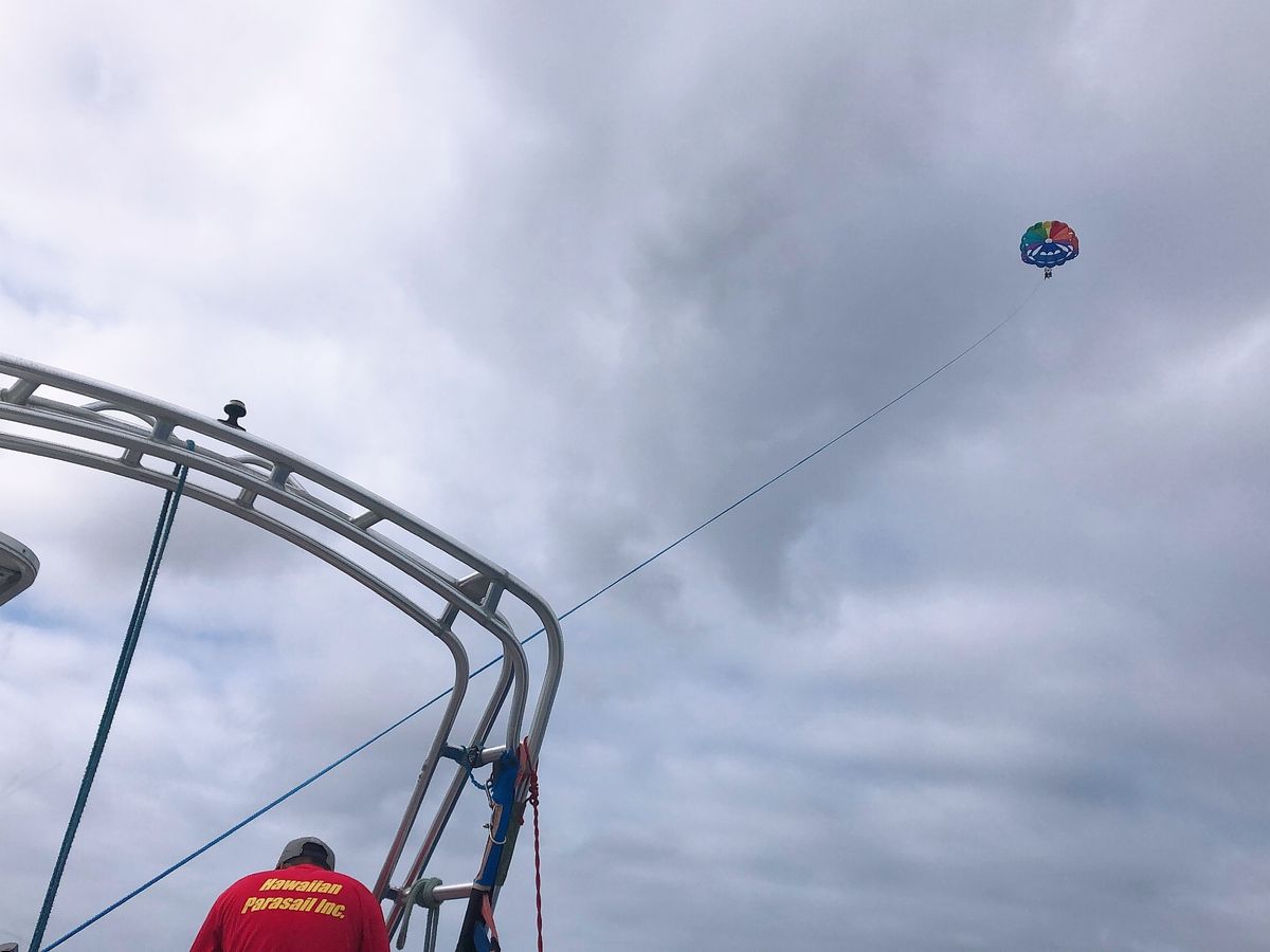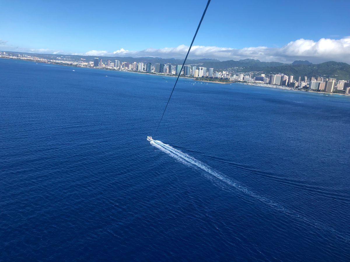 係りの人がとてもフレンドリーでした!150メートルを希望しました。乗る前は怖かったですが、空を飛ぶとゆったりとした時間が流れてとても気持ちが良かったです。他の人が飛んでいて船に乗っている間は、船のスピード感を楽しめ、船と空で二度楽しめました(^O^)!とてもおすすめです!ハワイに来た実感がとてもわく、ハワイならではの体験になったと思います(^O^)