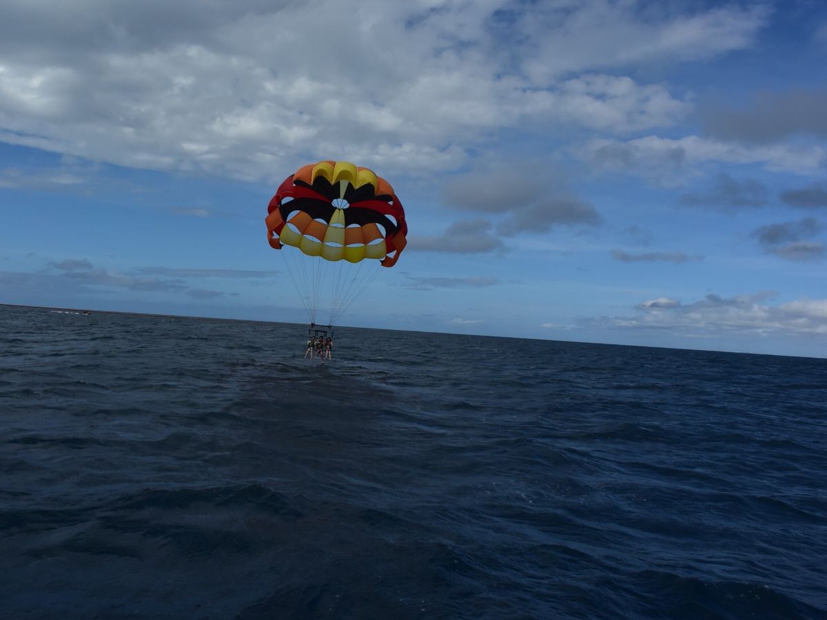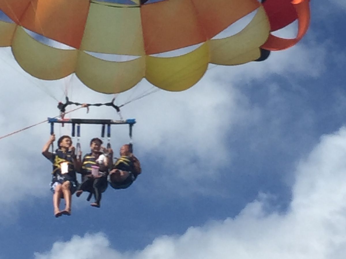 マリンスポーツは年も年だし、無理だろうと思っていましたが、主人のすすめでトライすることにしました。ホテルへの送迎ありだし、ヨットにのれば装備も全てスタッフの方が装着してくれるし、至れり尽くせりでした。そしてパラシュートをつけて、空に舞い上がった時の爽快さは素晴らしかった❗全然怖くありません❗ズーッと飛んでいたかったです。来年もできるならぜひ飛びたい‼️