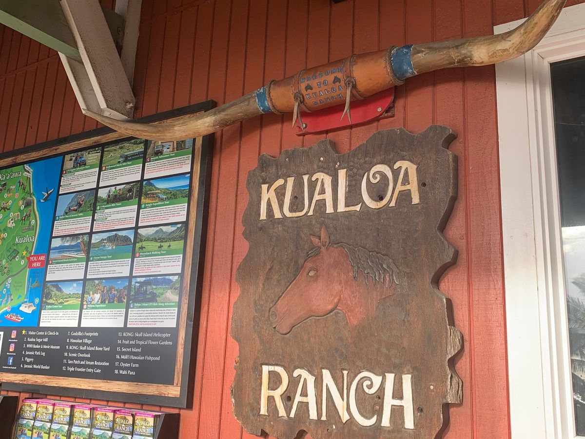 あいにくの曇り空でしたが、馬に乗ってクアロアランチを巡ることができました。1時間ほど馬に乗るので、お尻が痛くなりましたが、とてもいい体験をすることができました。ワイキキからクアロアランチまで送迎バスで1時間以上かかりましたが、大型観光バスだったので、揺れもせず爆睡することができました。乗馬の引率のお姉さんに、馬に乗った自分の写真をカメラで撮っていただいたのですが、あとから見返すとなぜか1枚も撮れておらず、乗馬の写真が残っていないのが残念です。