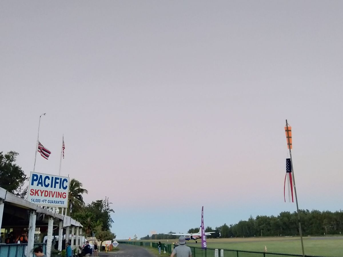8時半ころ、飛びました。気持ちいいです!間違いなく最高です!透明のゴーグルも装着するので、コンタクトが取れることもなく、視界もよく、写真写りもよく、息も普通にできました。唯一、股関節のところにかかってる安全ベルトが、左右に動くときとパラシュートを開いて一気に上昇するときに「うっ」と無心になるほど痛かったですが、我慢できました。そんなことよりとにかく最高です。太ももの付け根は、確実に締め付けられますが、大丈夫なので、このときだけ我慢してください!そんなことより空に浮いて、風が気持ちよくて、視界が広くて、本当に最高です。