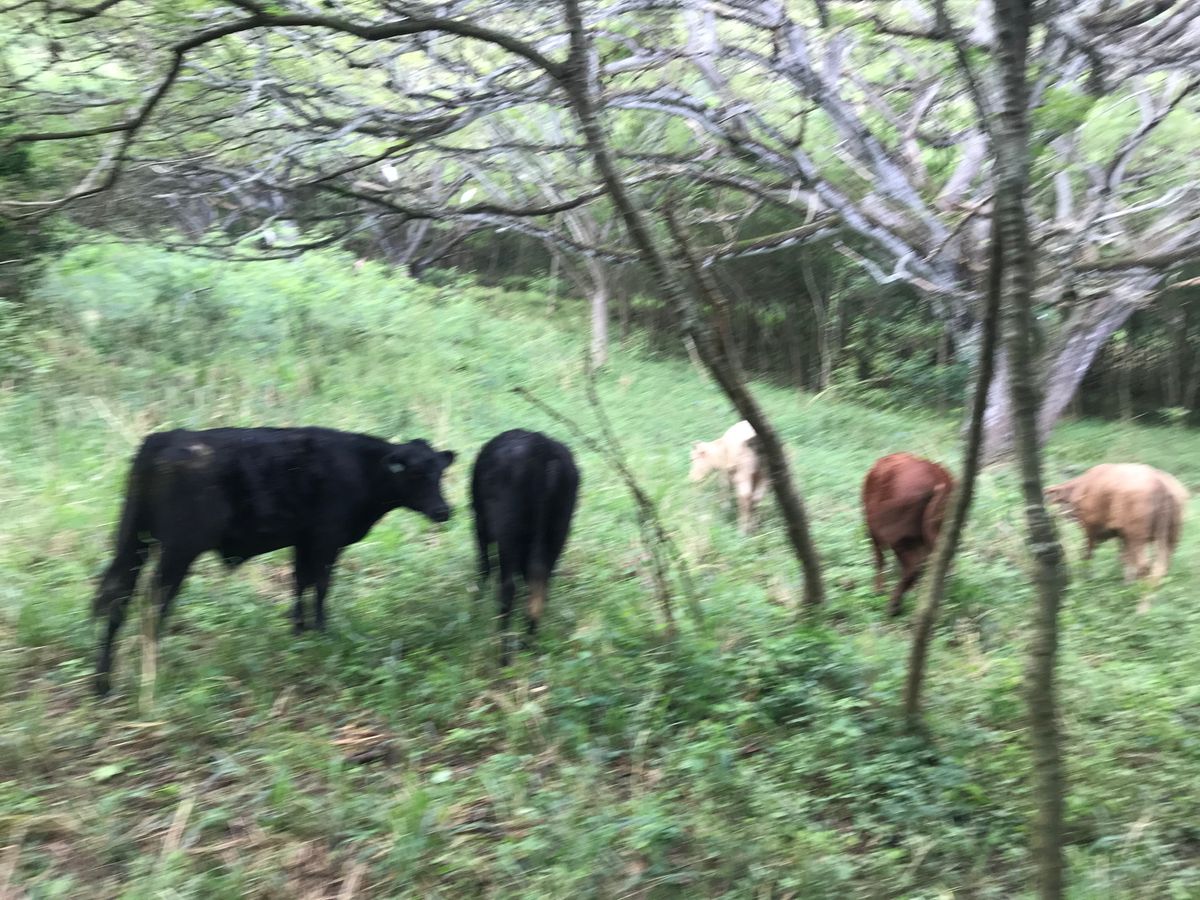 クアロアランチは、広々と壮大の一言。途中森林の中を抜けるときは、イノシシの親子や飼いっぱなしの牛の群などにも出会いほのぼの。
