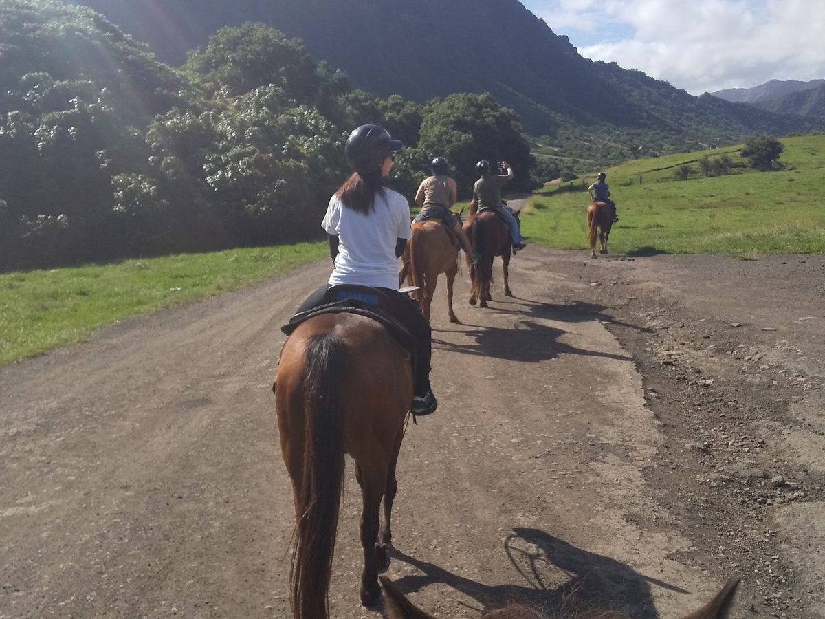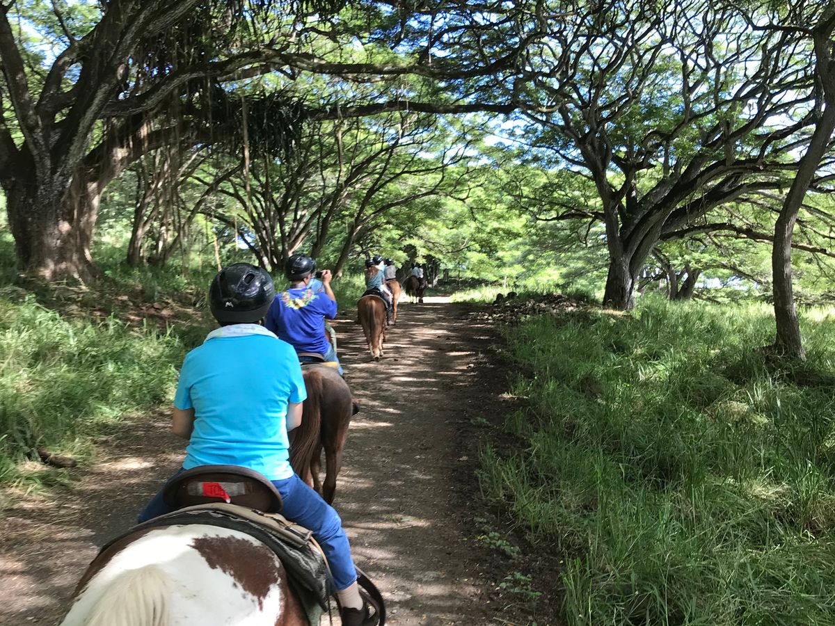 息子・娘と参加しました。台湾の親子3人と6名プラス クアロアランチのスタッフさんが1人付いてくれました。始めに馬の名前をちゃんと教えてくれてコミュニケーションを取りやすかったです。果てしない広大な景色に 最初から最後まで感動でした。途中 スマホを渡して乗馬姿の家族写真を写してくれたり クールに見えて実はとっても優しくて 馬に対しての愛を感じるスタッフさんでした。日本では決して味わう事のできない豪快で非日常的世界観で同じ地球とは思えない感動を噛みしめる事ができました。クアロアランチに行って 馬に乗った体験は人生の宝物になったと皆さんに伝えたいです