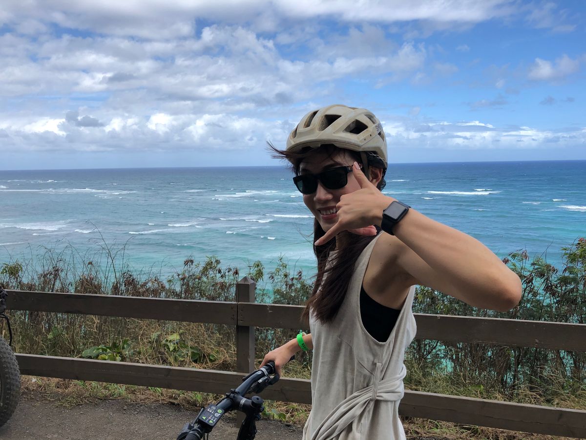 電動アシスト付きマウンテンバイクだったので急な坂道や凸凹道もガンガン進んでいきました!慣れるまで下り坂はスピードが出て怖かったけど、使い慣れてくるとスイスイ行けて気持ちよかったです!景色も日本とはスケールが違いすぎてハワイがもっと大好きになりました!