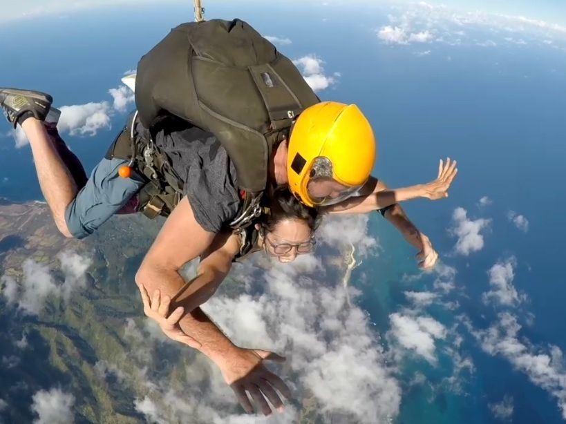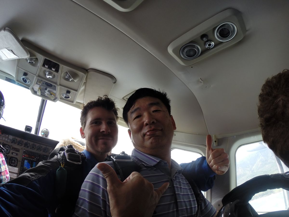 自分たちの番になって、飛行機で上まで行くのですがダイバーさんがすごく和ませてくれたり、ここは今この場所を飛んでいるんだよと教えてくれたりしました!