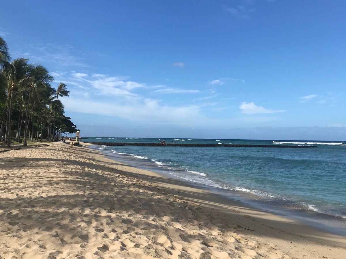 すっきり晴れた空の下でしたが、日差しはあるものの朝なのでそこまで暑くなく、気持ちが良かったです。集合場所のホノルル動物園まではロイヤルハワイアンセンター付近から歩きました。ヨガの最中に雨がぱらつき虹が出て、最高の演出でした。滞在中、ヨガは1回だけでしたが、以降も早起きしてビーチに行くのが習慣になりました。