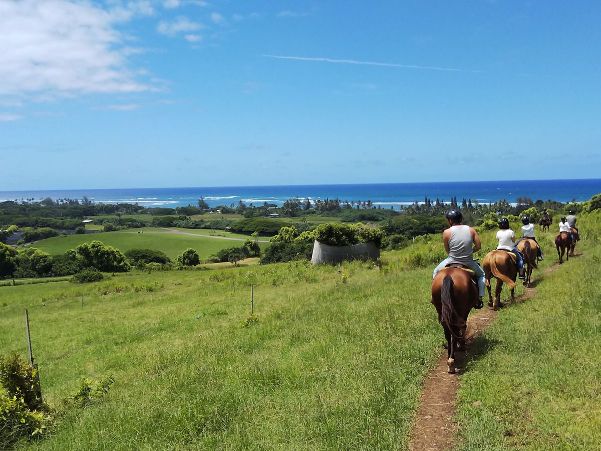 乗馬は日本でも経験は有りましたが(料金によるけど大体10分未満位?)、それよりもっと長い時間乗馬(約40分)出来、基本的には自分でお馬さん誘導して楽しい(^O^)。お馬は凄く賢いのでうちの小2の子供でも大丈夫でした!。また、途中でハレイワの町観光にも行けました(こっちは乗馬とミックスすると食事込みで約1時間だったから凄く駆け足(^o^;)、別コースで観光のみも有りました)また、高確率て遭遇出来る海亀にもしっかり出会えました!!!