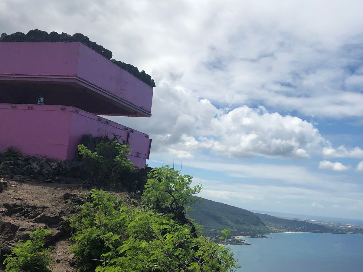 ピンクピルボックスはダイアモンドヘッドと違い、道が舗装されていないため、足場が悪いところも登りますので、サンダルやスカートはお勧めできません。