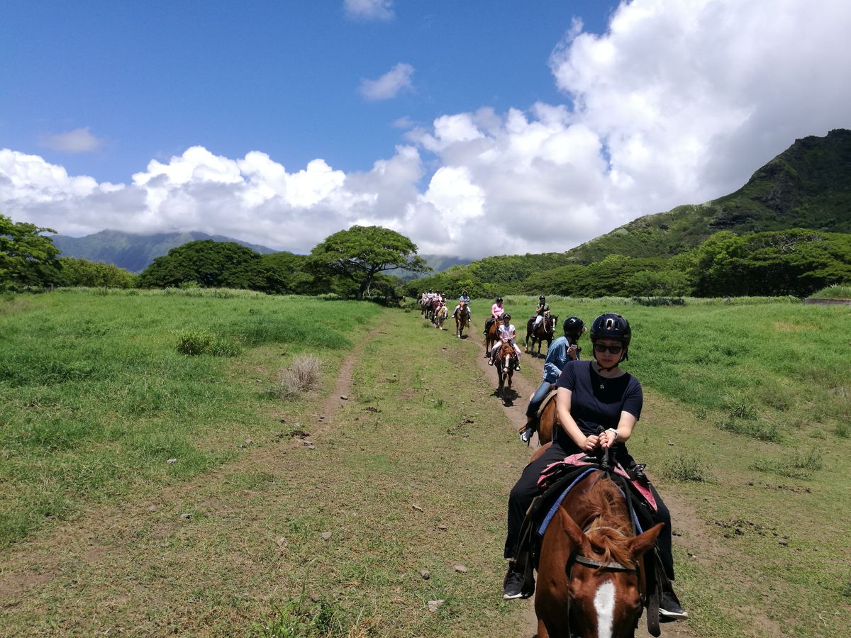 家族5人で参加しました。乗馬は初めてでしたが馬に乗って海岸沿いをゆっくり歩き時々海ガメが泳いでいるのも見られました。馬達もとてもおとなしく可愛くて全員馬ファンになりました。ドールプランテーションやハレイワなど時間は少しでしたが立ち寄る事ができとても充実した1日を過ごせました。