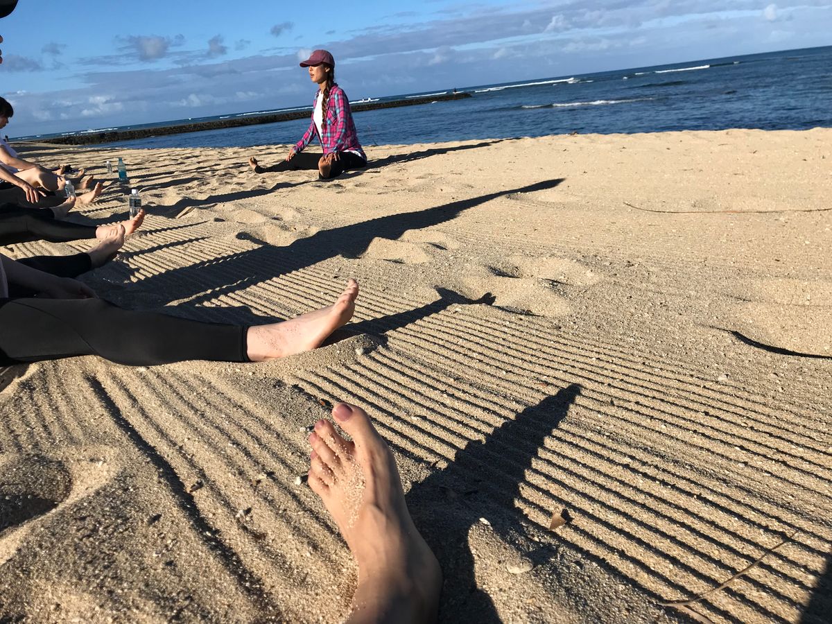 ビーチでのヨガはバランスが取りにくく、普段スタジオなどでやるヨガとは全く違いました。優しすぎず、きつすぎずとても楽しく出来ました。