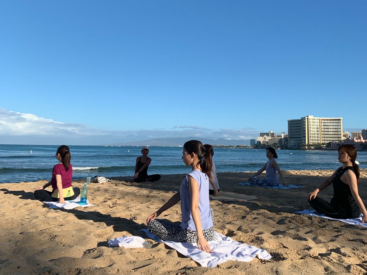 何年もホットヨガに通っていた私ですが、瞑想時や頭の中にいつもイメージしていたのはハワイのビーチでした。呼吸を波の音に見立て、ハワイのビーチでYogaをしている自分をイメージしていたのです。それが実現した瞬間でした。早朝の最高に気持ちの良いビーチでポーズをとっている時、幸せで感動していました。パワーヨガに近く少々キツかったですが、先生の説明もわかりやすく、最高のヨガが出来ました。ありがとうございました!!マハロ☆