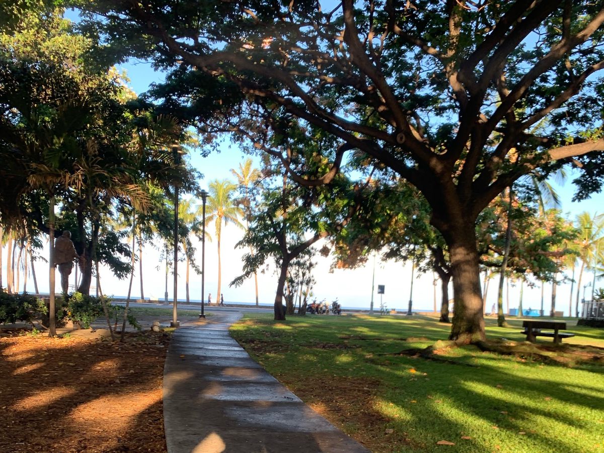 ワイキキビーチから少し離れているのと、朝方のまだ涼しい時間帯なので人がほとんどいなくて静かにヨガに集中できました。