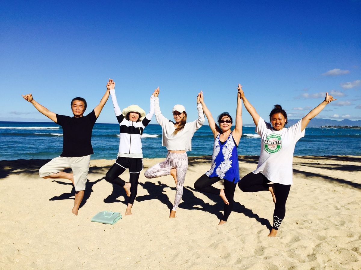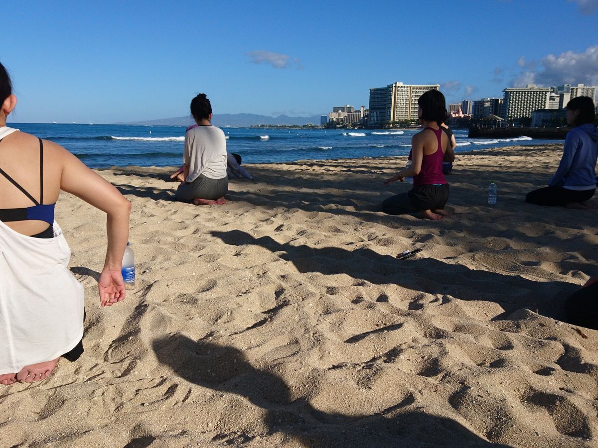 ここ最近ハワイに行った時は毎度お世話になっております。 波の音 海の風 鳥のさえずりを感じながらのヨガは最高~!!! 先生の声に癒されて今日一日おおらかな気持ちで過ごせそう。 集合場所のワイキキ動物園前のバニアンツリーも圧巻のパワーで、ビーチまでの移動も気持ち良いお散歩になります。 次回はカピオラニ公園でのパークヨガも体験してみたいと思っています。ハワイでのヨガはまさしくパワーチャージできること間違いなしですよ。