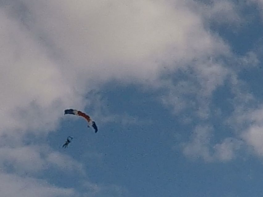 ピックアップ場所に来たのは日本人でした。道中、楽しいお話を聞きながら移動。現地に着いたら雨が降ってましたが飛ぶときには晴天。4267メートルからのダイビングはあっという間でしたが今までに体験したことない感動でした。40代50代の夫婦には無理かと思いましたができないことはないんだと・・・本当に楽しかったです