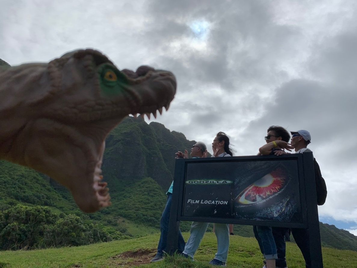ハワイには何度か訪れていたのですが、クアロア牧場は今回初めて行きました。私たちが参加したのは、乗馬と映画ロケ地めぐりのコースでした。まず最初に乗馬をしましたが、ハワイの青空の下、とても気持ちよく乗馬を楽しむことができました。一つのグループで並んでいくのですが、インストラクターの方達が何人かいて、フォローをしてくれるので、初心者でも全く問題ありませんでした。中には馬が草を食べてしまったり、道を逸れてしまう馬もいましたが、私の乗った馬はとても良い子で、脇道にそれたりせず、ちゃんと歩いてくれました。その後は映画ロケ地めぐりでした。私はクアロア牧場で撮影された映画はジュラシックワールドくらいしか知らなかったので、もし知っていたらもっと楽しめたと思います。それでも、広大な敷地の中にいるだけで、満足できました。ハワイは海だけではなくて、陸も迫力を感じることができ、大満足でした。