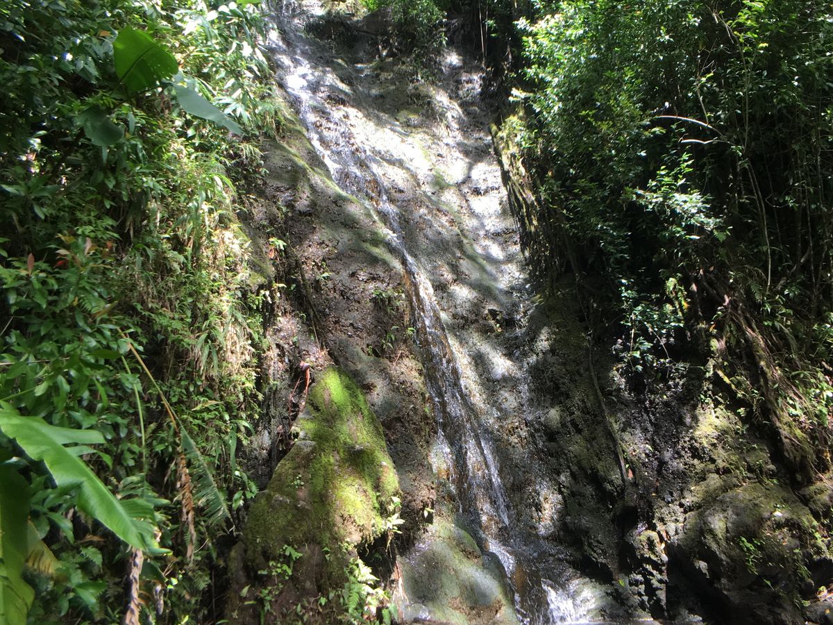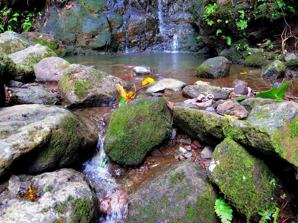 ガイドさんからハワイの歴史も聞きながら40分くらいで滝に到着。大きな滝ではないのですが、前日の雨でちょっとばかり水量が増えていたのでラッキーでした。