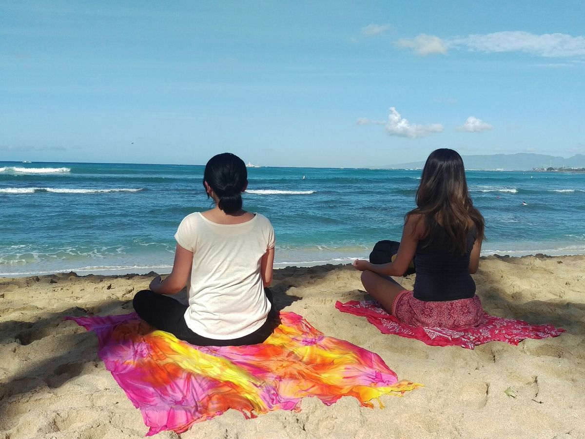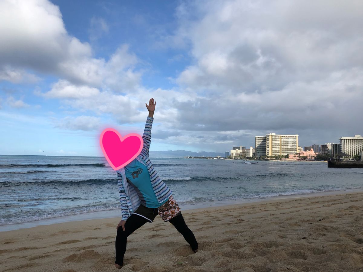 初めてのハワイで初体験のビーチヨガでした。