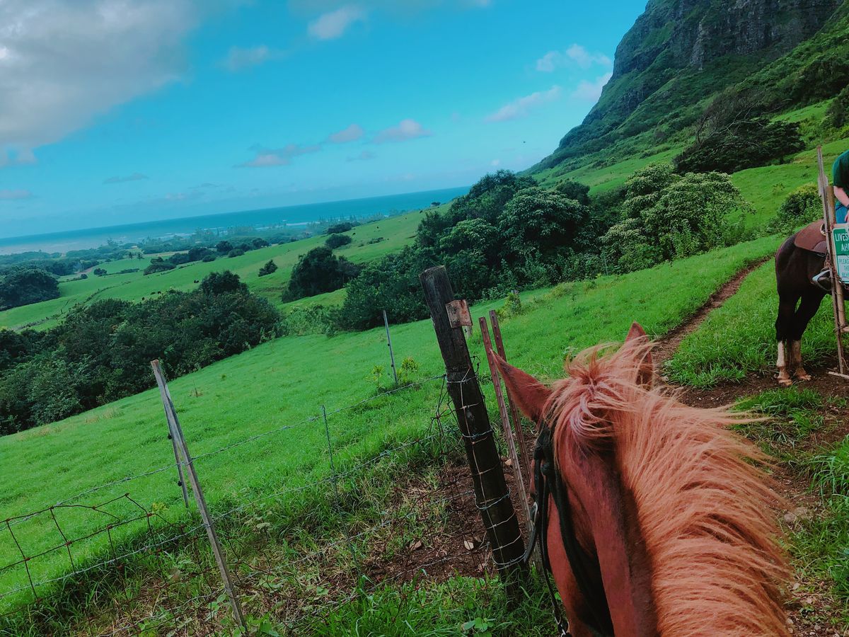 ヘルメットをつけてからツアー開始まではとてもスピーディですが、不思議と怖さはなかったです。海、山、どれを撮っても最高のロケーション!さすがクアロアランチ!お馬さんが途中で草を食べてしまってガイドに怒られてる姿も少し可愛かったです。