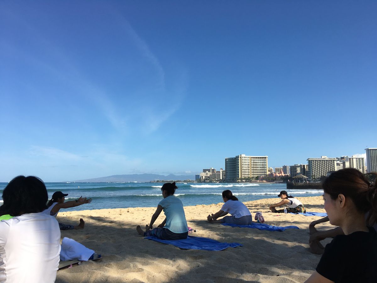 早起きする甲斐ありますよ!!最高の気候にも恵まれ、穏やかな風と波音の中、心地よく体の隅々までストレッチできリフレッシュ出来ました。初心者にも分かりやすく教えてくださり、マイペースに安心してヨガが出来ます!男性の方も半数くらいいらっしゃいました。肺の中の空気が全部入れ替わったような気持ちになりました。レッスンが終わると体が軽く心地よい幸福感に包まれ、最高の1日のスタートが切れること間違いなしです。