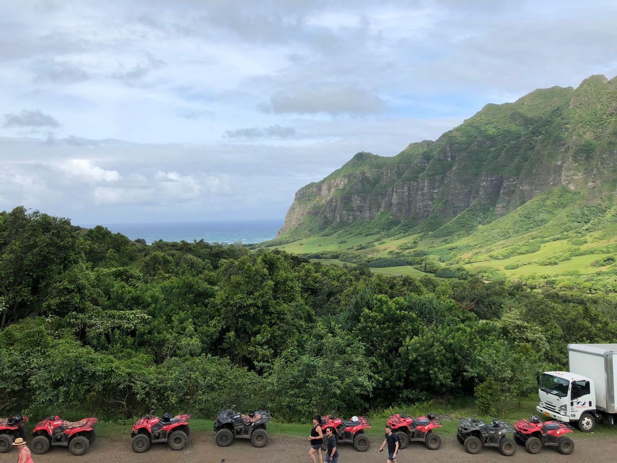 オアフ島に遊びに行くならクアロア牧場は絶対に外しちゃいけないくらいオススメです。楽しかった!絶景ポイントが多く、ガイドの接客と知識も徹底していて値段相当と思いました。四輪バギーは人気なので予約は早目に!
