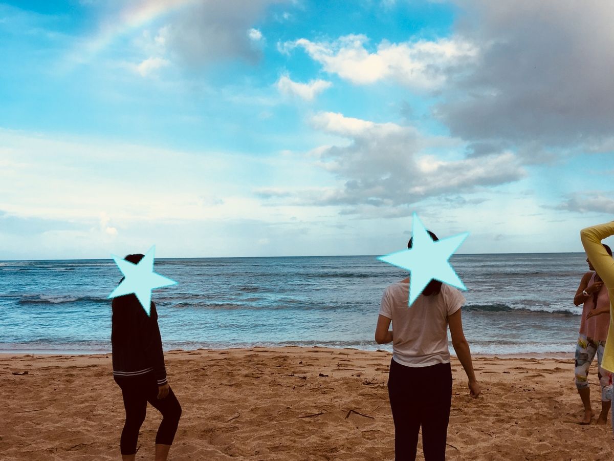 降ったりやんだりの天気でしたが、そのお陰で虹を見る事ができました。早朝のビーチは静かで波の音を聞きながら、ゆっくりと身体を動かせて気持ち良かったです。ポーズによっては汗をかく事もありましたが、キツければ違うポーズを教えて下さるので、初心者の方も大丈夫だと思います。
